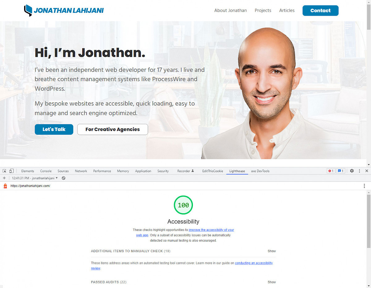 To ensure that your website is accessible, a web developer will use automated testing tools and make modifications to the code to correct any issues. Automated accessibility testing tools, such as Google Lighthouse, axe, WAVE, Accessibility Insights for Web, and SortSite can scan your website for common accessibility issues.