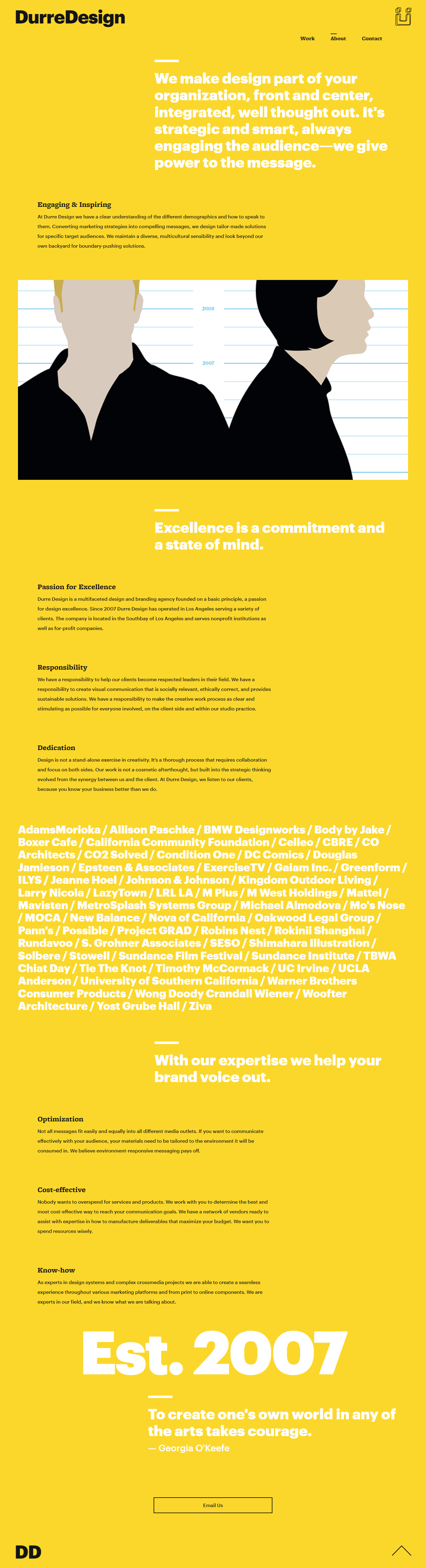 In 2023, I developed the new portfolio website of Durre Design, a creative agency based in Los Angeles, California and close design partner. The website showcases the beautiful breadth of design work and a fun about page, all which can be easily managed in the backend of the content management system.