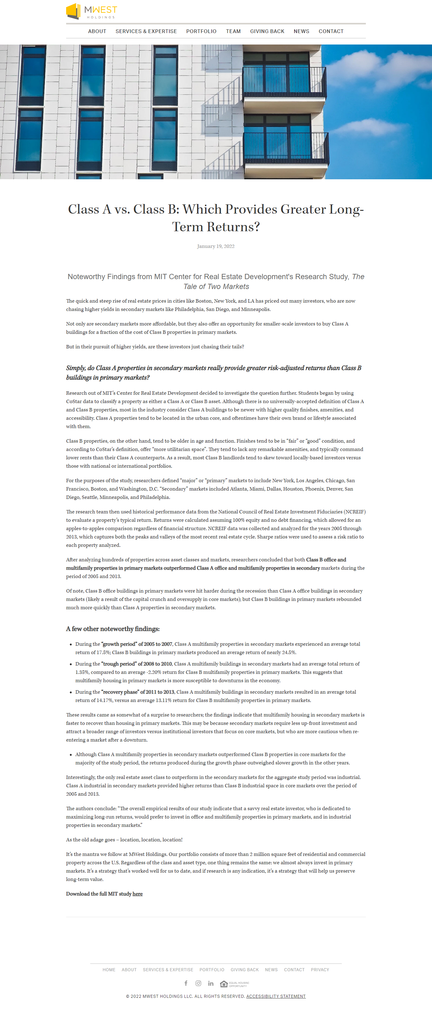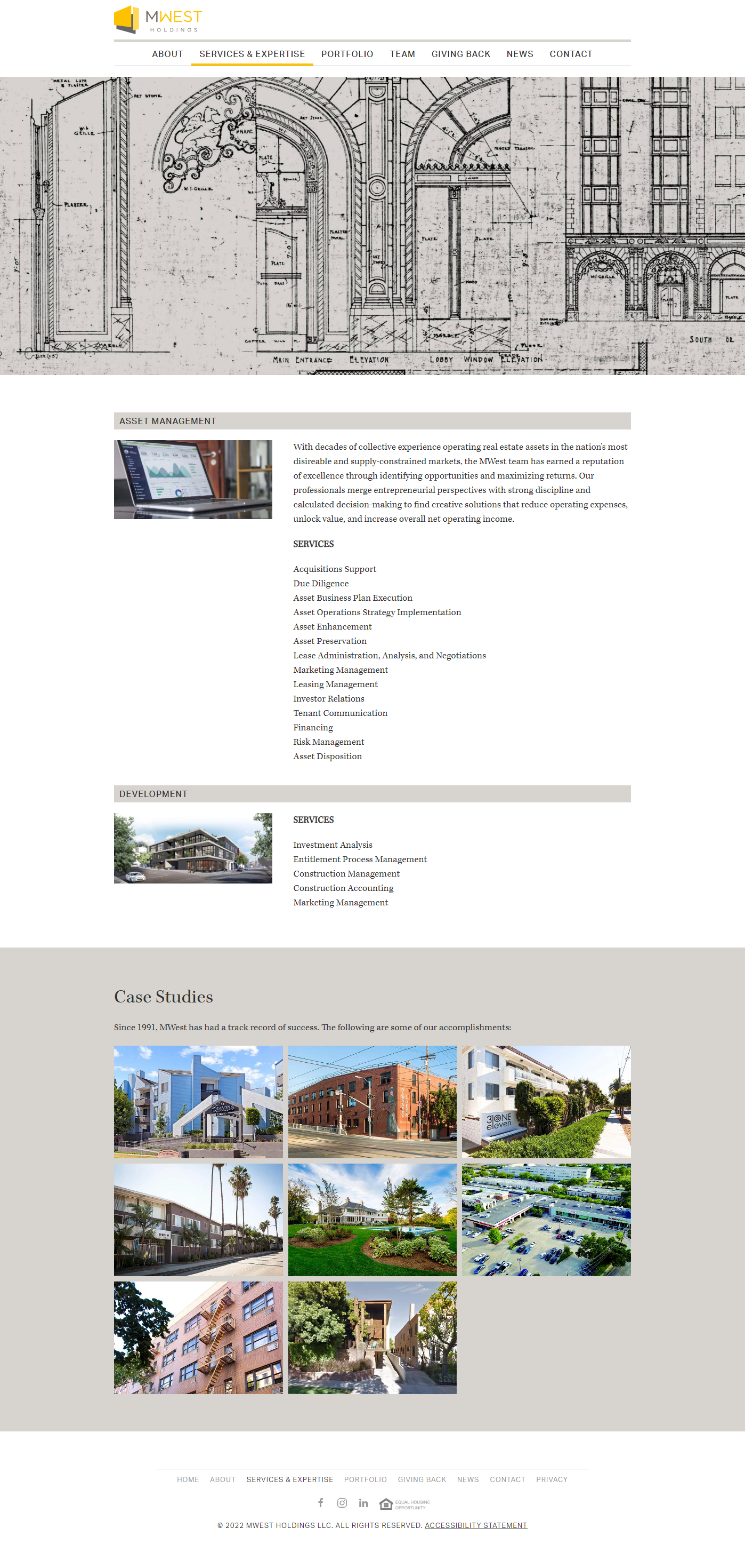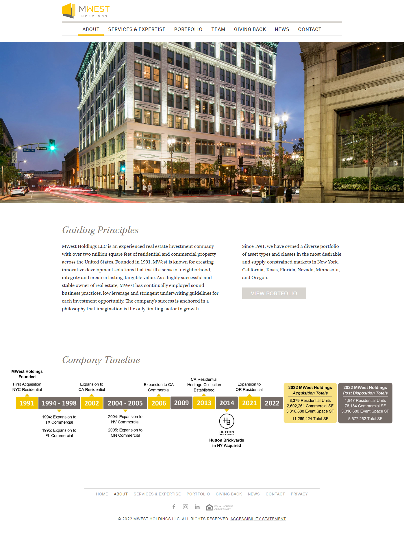 MWest Holdings is an experienced real estate investment company with over two million square feet of residential and commercial property across the United States. In 2015, I worked with Durre Design and redeveloped their corporate website.