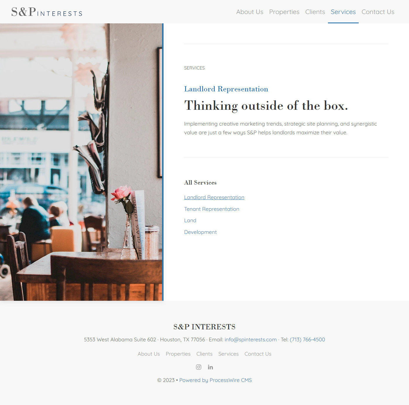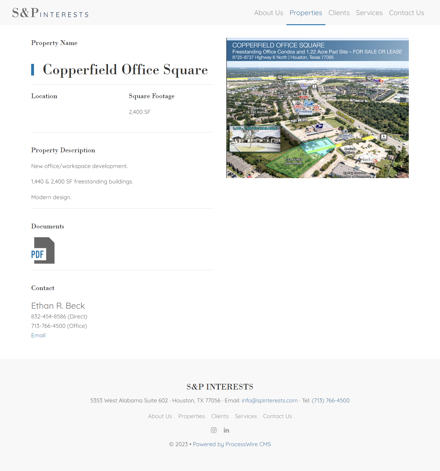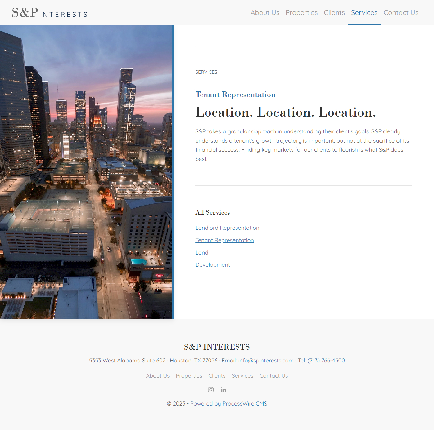 S&P Interests is a Houston-based commercial real estate firm. In 2021, I designed and developed their new corporate website using ProcessWire and UIkit.
