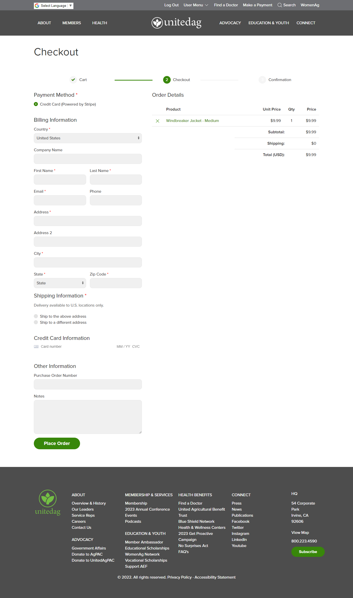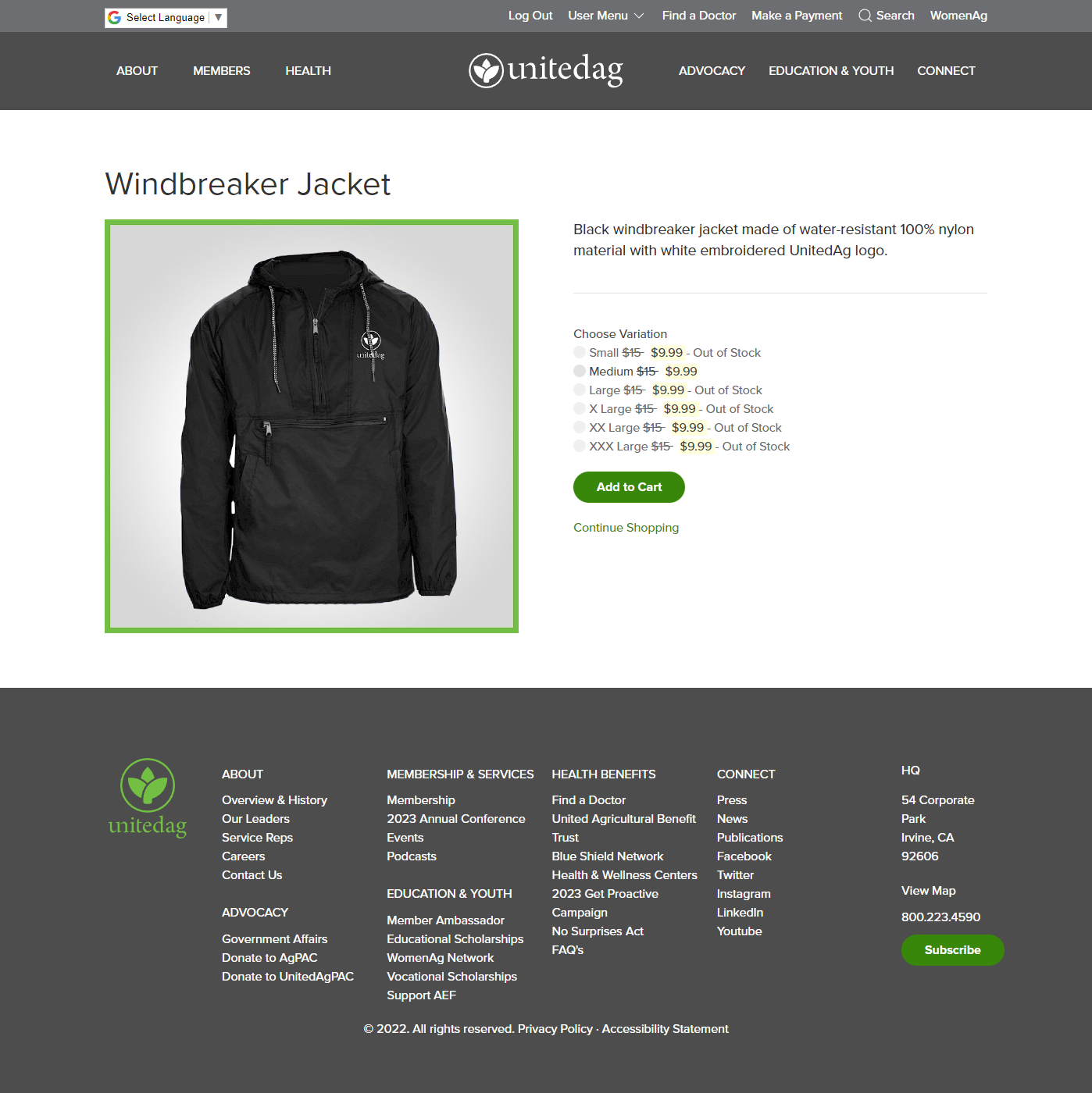 A custom ecommerce system was developed that supports the sales of UnitedAg merchandise. Special features include the ability to hold silent auctions with bidding increments or buy-it-now capability. Stripe powers the payment process.